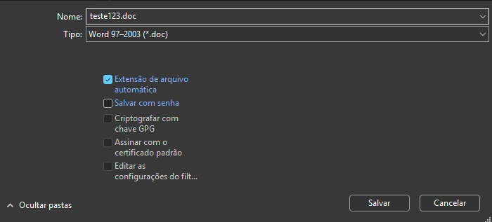 Para a criação do contrato, é recomendado utilizar um editor de texto e definir o formato final como .DOC