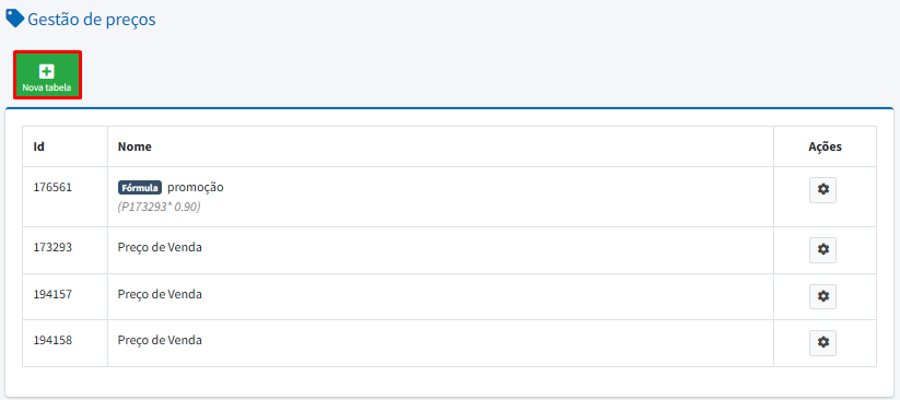 Para realizar o cadastro, vá na aba Gestão de Preços, e Nova Tabela
