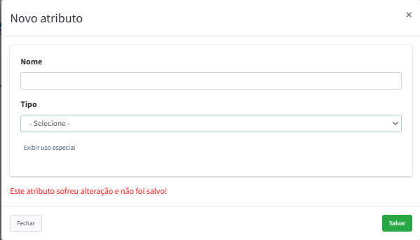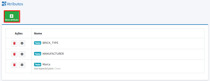 Para cadastrar, vá em Atributos > Novo atributo