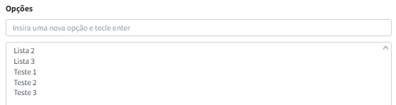 - Tipo lista de opções: Permite adicionar várias listas para selecionar na categoria:
