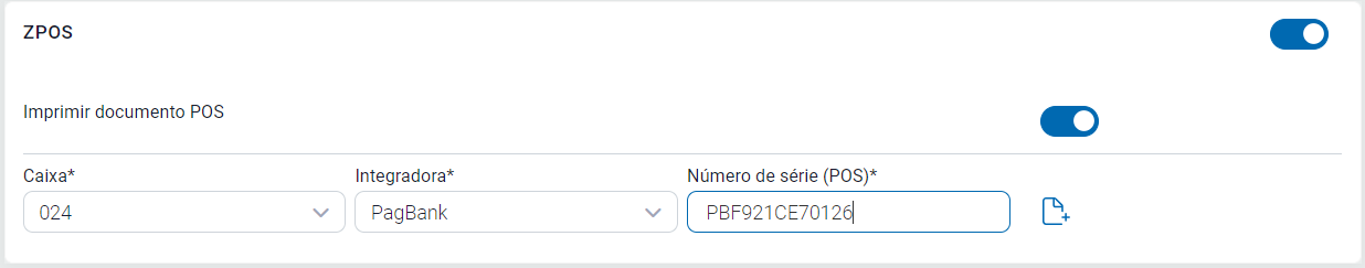 Ative a opção de ZPOS, selecione o caixa que utilizará aquele equipamento