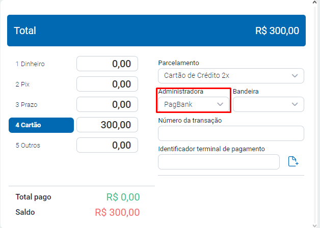 No campo de Integradora selecione PagBank e preencha o número de série do equipamento