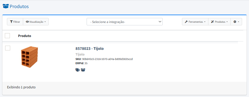 Na aba Produto é possivel verificar todos os itens enviados ao portal pelo Zhub