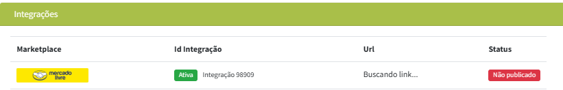 Integrações: Apresenta em quais integrações o item foi ativo e qual status.