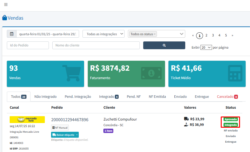 Para a venda apresentar no pedido de venda, é necessário que dentro do portal a venda esteja Aprovada e Integrada