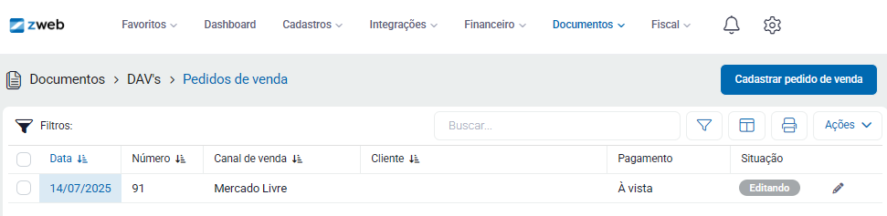 Quando a compra for realizada no marketplace, o pedido aparecerá de forma automática no portal, no Zhub e no Pedido de Venda, dentro do Zweb.