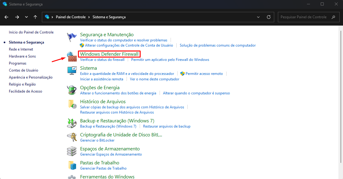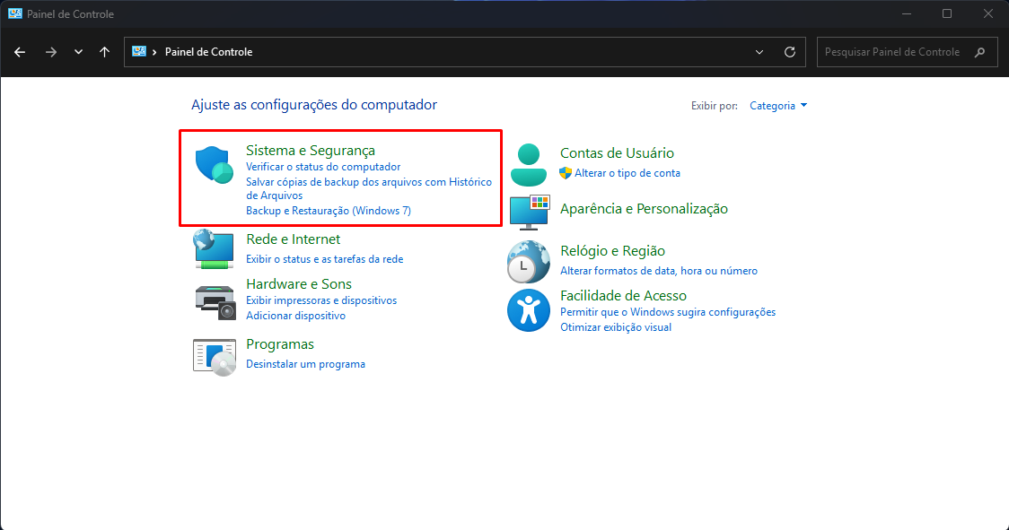Pode ser feito ao realizar o mesmo processo incial acima, acesse o Painel de Controle de seu computador;