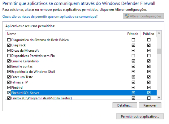 - Agora deverá acessar a tela para adicionar o servidor do firebird como exceção, então clique sobre a opção Permitir um programa ou recurso pelo Firewall do Windows;