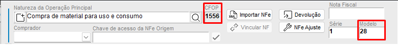 - Nota de Fornecimento de Gás - geralmente utilizada CFOP com terminação 556 (Compra de material de uso ou consumo). Modelo 28;