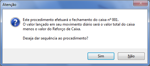 Ao clicar em SIM, a finalização e gravação dos valores de venda do período deste caixa serão gravados no movimento diário no Clipp Store.