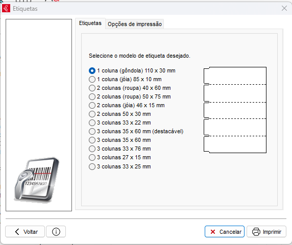 • Imprimir o preço: irá imprimir etiquetas com a informação do preço dos itens;