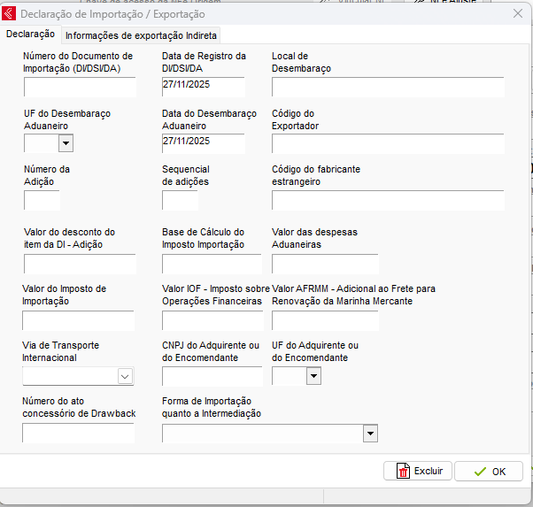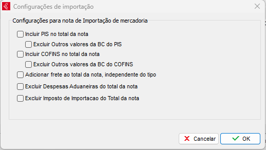 Obs: A opção Excluir Imposto de Importação do Total da nota funciona corretamente apenas quando estiver marcado Somar no total da NF de compra o valor do ICMS da NF de importação, para habilitar clique aqui.