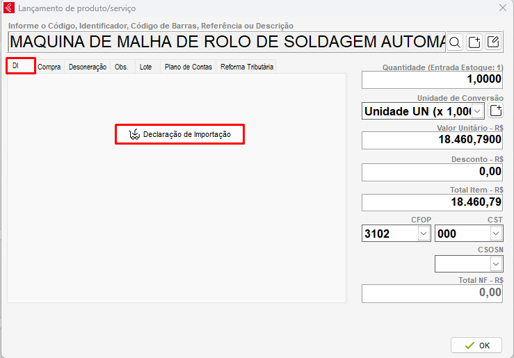O lançamento de nota de importação requer uma atenção maior, e em alguns casos o acompanhamento do contabilista, ou despachante. É de EXTREMA importância seguir e considerar apenas os dados da DI para o correto lançamento da nota.